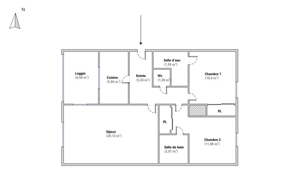 Surface Carrez : 59,35 m² + Surface loggia fermée : 6,58 m²