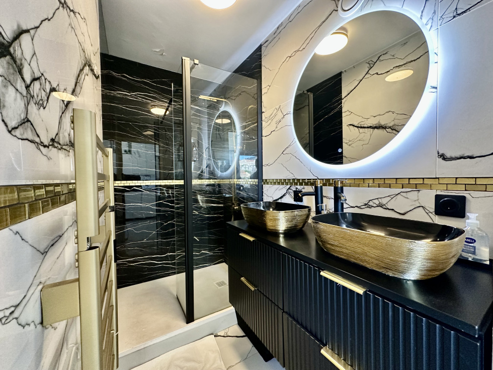 - Salle de douche moderne avec double vasque