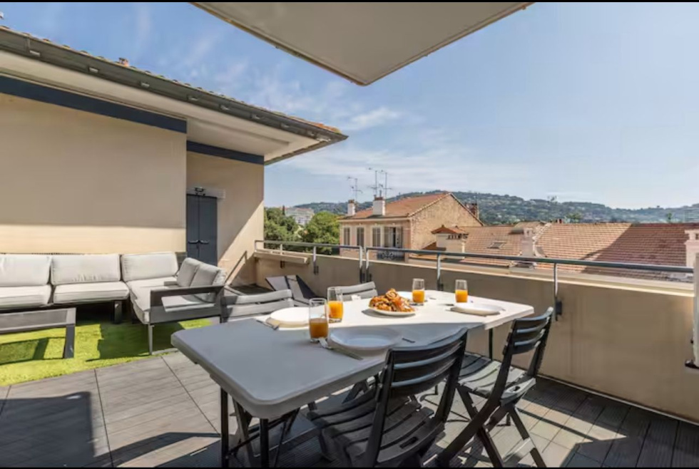 Le soir venu, vous ouvrez les baies vitrées du séjour de 16 m² et la terrasse devient votre extension naturelle : apéro entre amis, dîner sous les étoiles, ou simplement lire un livre en écoutant la ville vivre en contrebas. C’est ça, le vrai luxe cannois.
