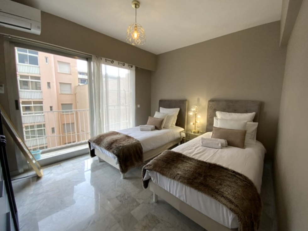Avenue Notre-Dame des Pins : Appartement traversant 3 pièces en location meublée, situé au 3ᵉ étage / 5 avec ascenseur, entièrement climatisé.